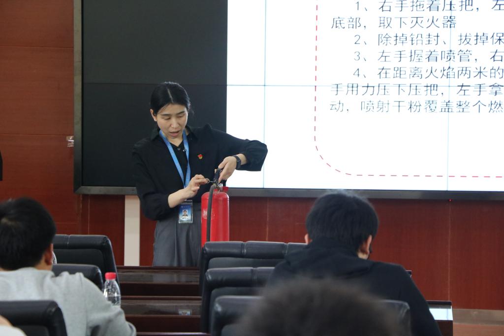 rabey雷竞技保卫处治安和消防管理科陈嘉璇老师开展了消防安全主题教育。她通过一段宣传片引出消防话题,以几则新闻报道作为切入点,强调了宿舍用电安全的重要性,警示大家务必遵守校园安全规范,禁止使用危险电器,养成良好的用电习惯。陈老师对火灾定义、火灾类型以及相关法律法规进行了详细的介绍,重点讲解了遇到火灾事故时正确的报警方式和逃生方法。她还以手中的灭火器为例,现场为大家生动讲解灭火器的使用方法以及注意事项,提醒大家注意检查灭火器的有效期时间和压力情况,并要牢记“一抽、二压、三对准”的使用口诀。