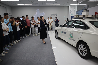 季清爽总监带领老师和同学们参观了展厅,现场工作人员向同学们详细地介绍了百度Apollo自动驾驶汽车的发展历史及所取得的成就,重点介绍了五代自动驾驶汽车的发展历程。同时介绍了自动驾驶出租车在武汉的产业布局以及运营模式,并就目前自动驾驶存在的“感知长尾”问题及百度解决方案进行了介绍说明。