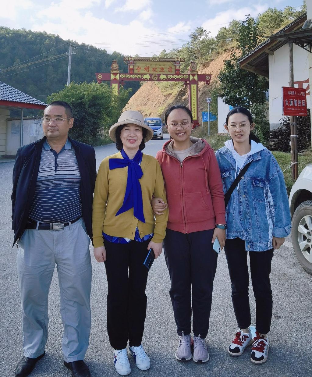 习近平总书记曾寄语新时代的中国青年:“要用脚步丈量祖国大地,用眼睛发现中国精神,用耳朵倾听人民呼声,用内向感应时脉搏。”如今的我,作为一名驻村干部,在乡村振兴的热土上挥洒自己的青春。在云南省丽江市宁蒗县宁利乡牛窝子村,一个美丽的彝族村庄,担任第一书记。走在田间地头,全身心参与到基层建设工作中,我深切地感受到了扶贫工作的巨大成就和新农村建设的轰轰烈烈。在驻村期间,我的导师康玲教授还曾不远千里来到我的驻村地,鼓励我用真心为民办实事,这对于我来说是极大的鼓励。