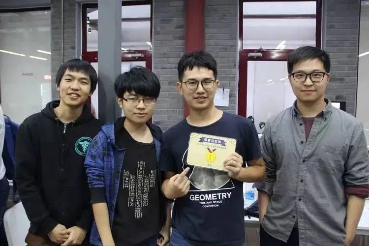 杨慧杰(右一)和创业团队伙伴