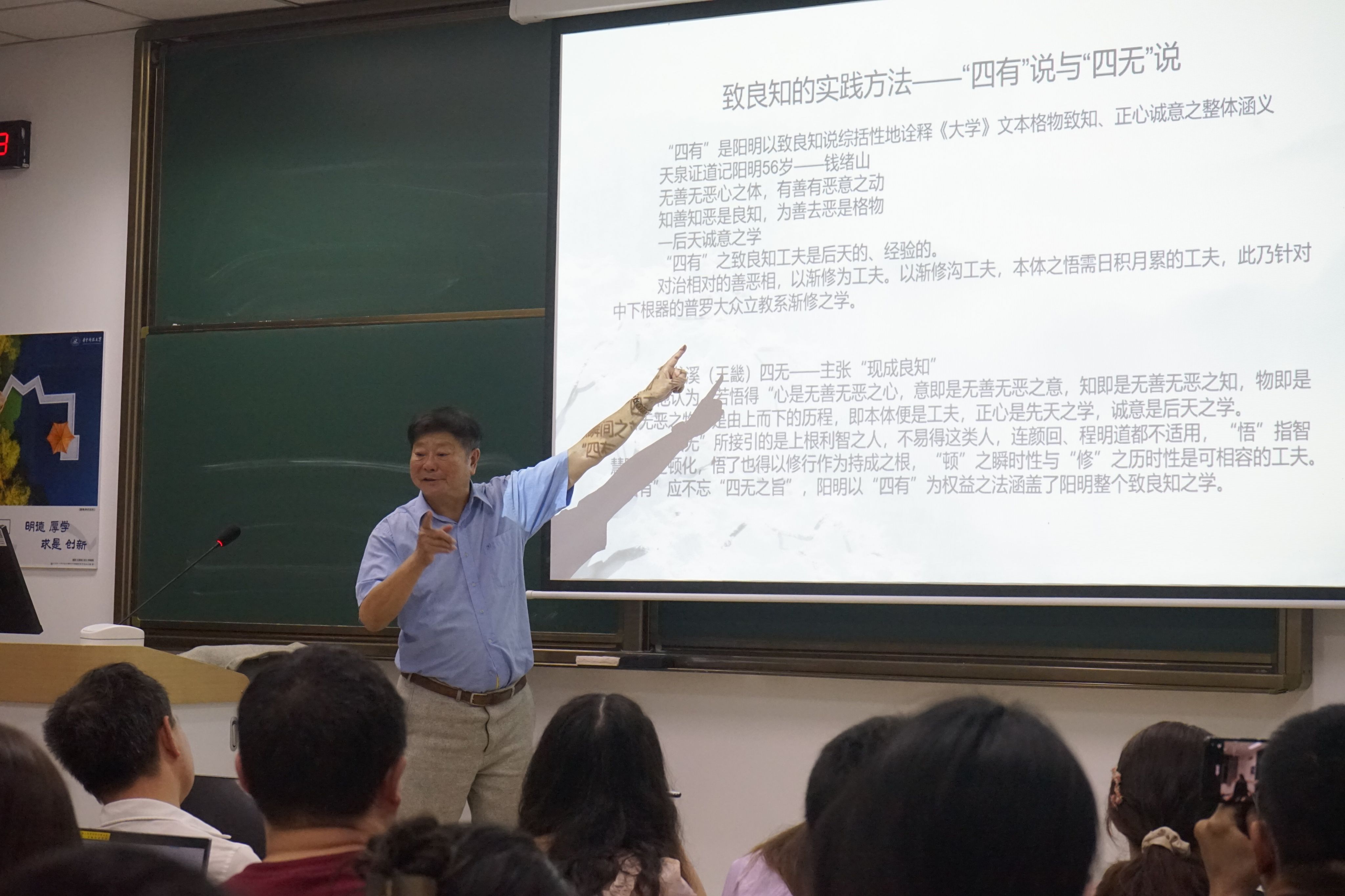讲座尾声,曾春海以哲学家之逝收束。王阳明其人命运多舛,五十余岁罹患肺病逝世。他还解读了王阳明的临终之言“此心光明,亦复何言”,并以一种诗意的方式结束了这场讲座。