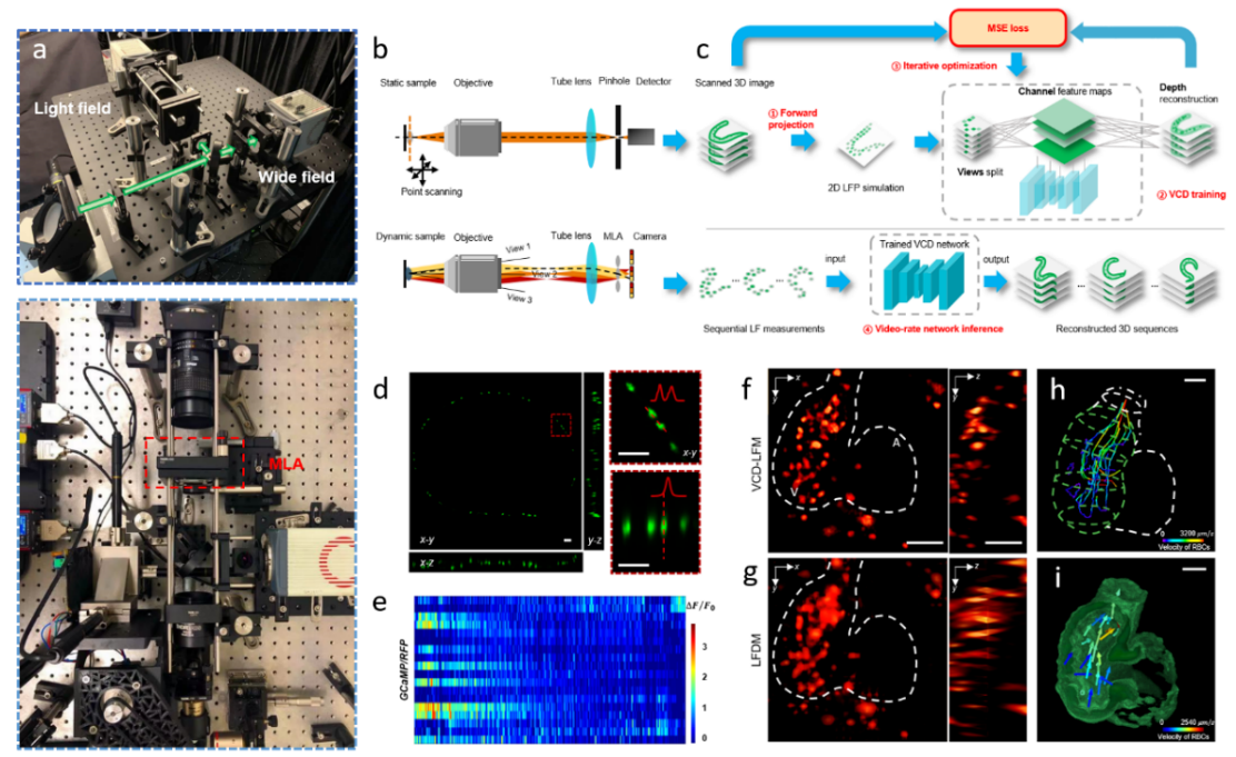 深度学习光场显微镜实现对心跳、血流、神经活动等瞬发生物学过程的四维高时空分辨率观测