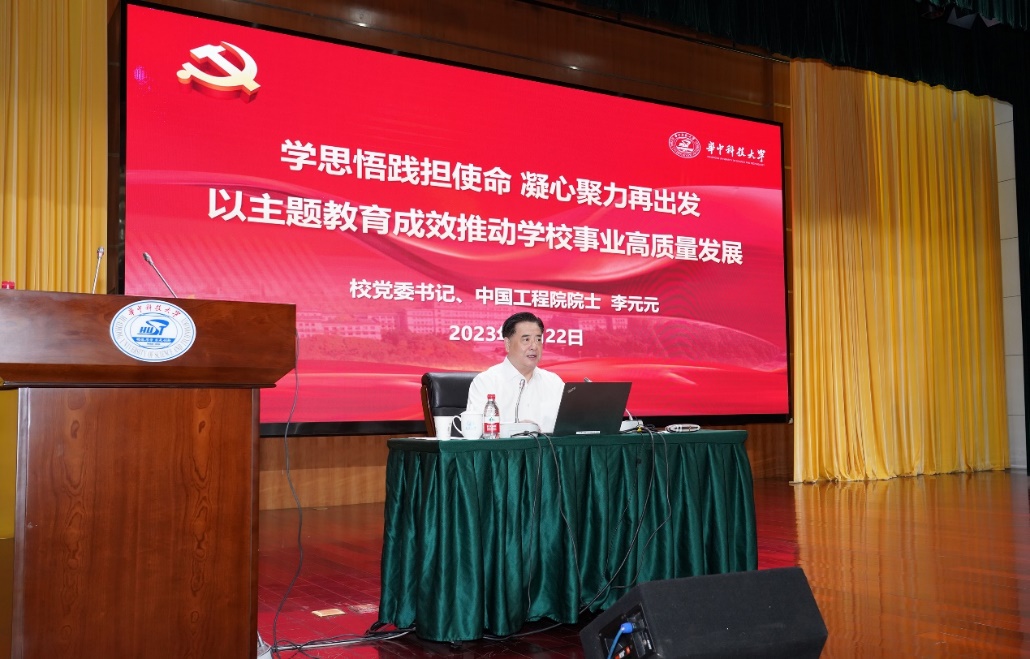专题报告会上,校党委副书记马建辉从背景和意义、贯彻教育教学理念,结合学校具体案例分析成效、问题、对策等方面,阐述如何以新一轮审核评估为契机,强化学生中心、产出导向、持续改进,全面提高人才自主培养质量。副校长许晓东通过详实数据,分析了人事人才工作现状和面临的挑战、改革的基本思路、改革的重点任务,强调要深化人事制度改革,激发干事创业活力。副校长于俊清系统阐述了总体国家安全观的核心要义及内涵要求,并结合当前形势和学校实际,分析学校安全工作面临的主要问题和挑战,强调要牢固树立总体国家安全观,建设更高水平的平安校园。电气学院院长胡家兵分享了电气工程学科以学生为中心的拔尖创新人才培养体系探索与实践。基础医学院党委书记秦选斌汇报了医学拔尖创新人才培养的实践。机械学院院长尹周平介绍了落实主题教育要求,改革创新打造一流机械工程学科师资队伍的思路与做法。管理学院院长杨治分享了如何以一流师资队伍赋能管理学科高质量发展的经验做法。