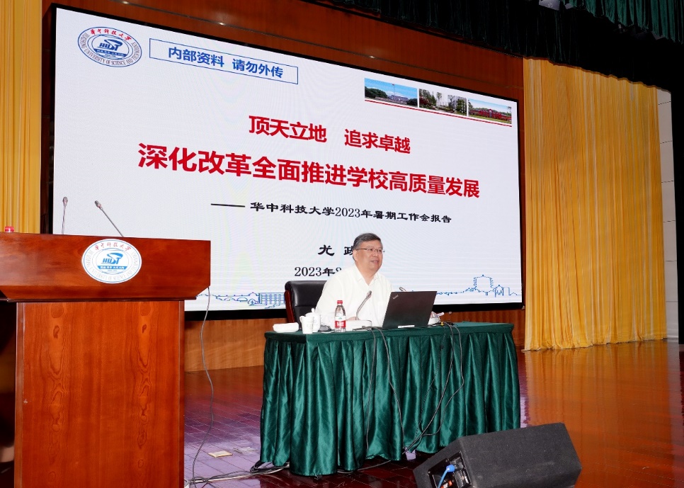 尤政校长围绕存在的问题、改革的思路、改革的举措等方面,详细阐述了学校深化改革的六个方面,即深化人事制度改革,提升人才队伍水平;强化拔尖创新人才和卓越工程师培养;坚持“四个面向”,全面提升科技创新能力;不断完善大学治理体系,提升治理水平;提升服务保障能力,建设舒心校园;加快扩大高水平教育对外开放。他还就学校下一阶段的三大主攻重点任务“筹建高等研究院”“建设光谷国家实验室”“做强医工交叉”进行了重点部署。