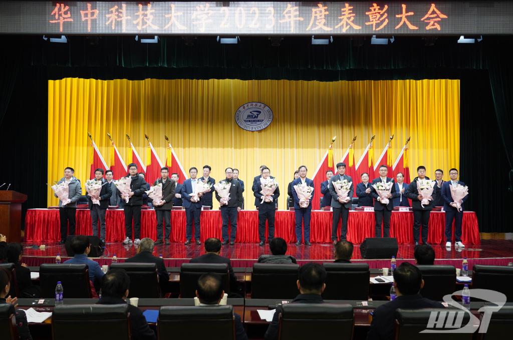 获得国家级教学成果奖的项目团队负责人计算机学院冯丹、光电信息学院唐明、药学院张勇慧、能源学院陈刚、集成电路学院邹雪城、第二临床学院陈孝平、土木与水利工程学院丁烈云、附属小学李晓艳、机械学院丁汉、生命学院余龙江、电气学院文劲宇、材料学院周华民、新闻学院张昆、机械学院许剑锋、幼儿园曾静上台接受鲜花。