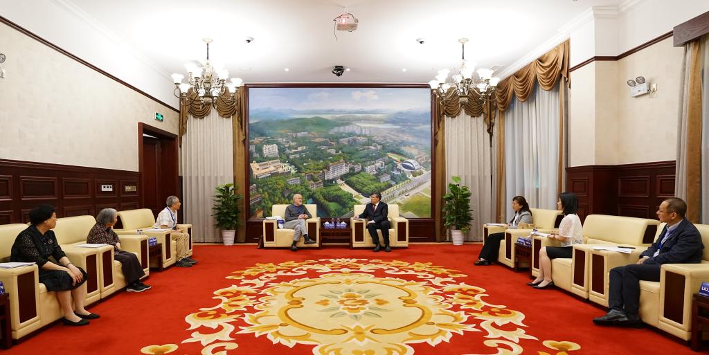 尤政对Erwin Neher教授的来访表示热烈欢迎,高度赞扬Erwin Neher教授在神经科学和生理学领域的学术成就和学术声誉,并简要介绍了我校的基本情况。他指出,我校对德合作源远流长,已同30余所德国高校及研究机构持续开展人才联合培养及合作研究。尤政表示,自1994年起,Erwin Neher教授与我校生命学院在科学研究和人才培养方面紧密合作,取得丰硕成果;期望双方围绕创新型人才培养、高水平科技自立自强等方面进一步开展合作,产出更多的标志性成果,成为中德两国科技教育合作新典范,为推动生物物理学科的发展作出更大贡献。