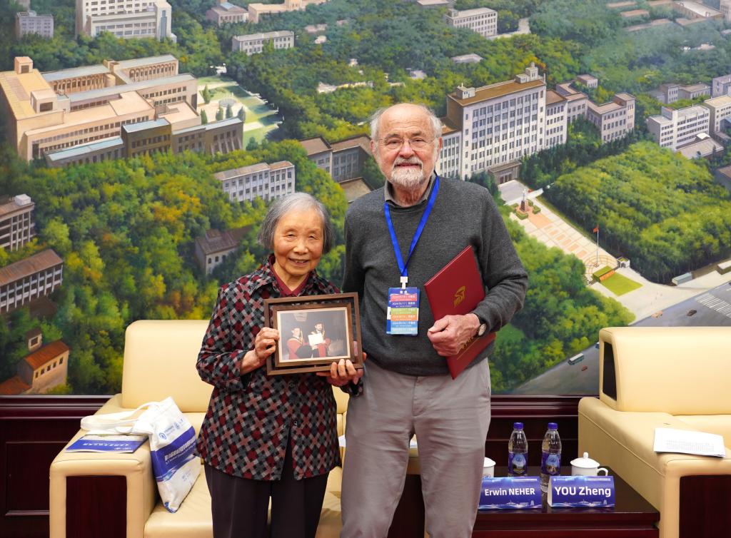 尤政向Erwin Neher教授颁发名誉教授聘书。