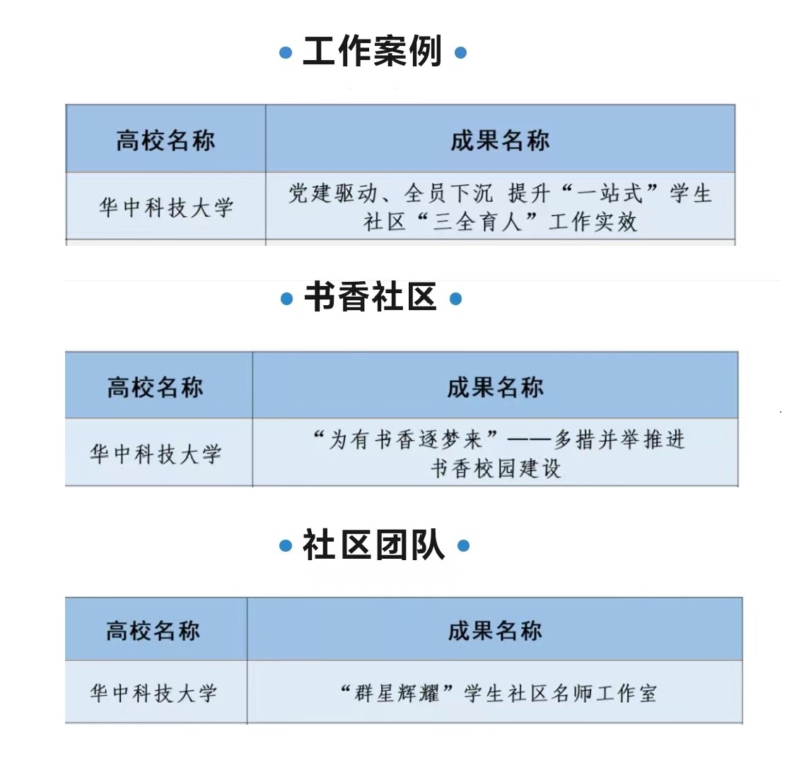 新闻网讯 5月14日,由教育部思想政治工作司主办、全国高校思政网承办的2023年高校“一站式”学生社区风采展示活动优秀成果名单揭晓,我校报送的3个案例入选所属评选单元优秀成果,入选数量位居湖北省高校第一、全国高校前列。