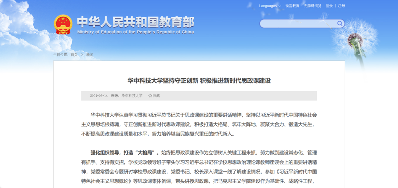 教育部网站推介我校新时代思政课建设工作特色亮点经验
