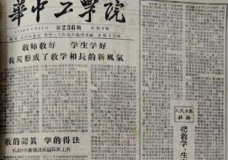 建校初期,学校有8个工科专业,4个专修科,以“培养红色工程师的摇篮”为建设目标,制定了《华中工学院12年远景规划和1956~1960年的综合发展规划》,要把学校建设成为全国重点大学。围绕每一门课程,学校在全校范围内展开讨论、制定大纲、出台政策,以理论与实际相结合为原则,加强基础课程改革、教材编订,修订教育计划,开展关于如何把教学、生产劳动与科学研究相结合的讨论,形成了“教师教好,学生学好”教学相长的良好风气。