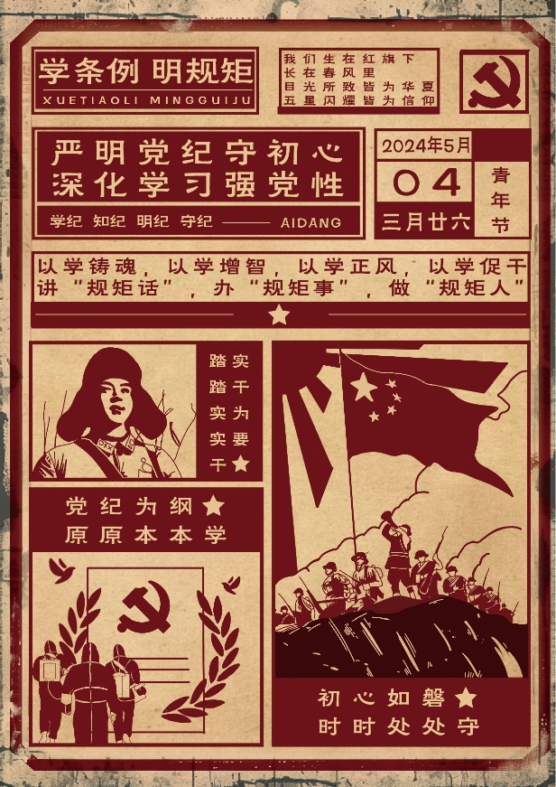 以培促学,找准“落脚点”。强化育人工作指导,将党纪学习教育融入辅导员日常培训,在“辅导员沙龙”中增设党纪学习教育环节,每两周开展一次专题学习与小组研讨,凝聚思政队伍的思想共识。强化党员骨干培训,将党纪学习教育融入党员骨干日常培训,在“支书达理”“学讲沙龙”上开展党纪专题学习研讨,引导学生党支部书记、支部委员、党建团队学生负责人、学讲团讲师等学生党员骨干先学深学。强化典型创建培育,将党纪学习教育融入示范创建和质量创优工作,在2024年党员标兵和样板党支部的创建申报标准、创建内容中增加党纪学习教育板块,引导学生党员带头原原本本学、逐章逐条学,动员学生党支部开展联学共建、实践教学等,营造浓厚的学习氛围。
