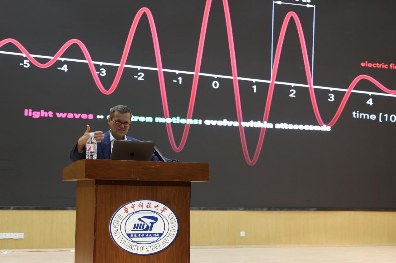 会见结束后,Ferenc Krausz在光电信息大楼C118报告厅举行题为“亚原子运动:从捕获电子到探测人体健康—基础研究如何转化为实际应用”的精彩讲座,500余师生现场聆听讲座。