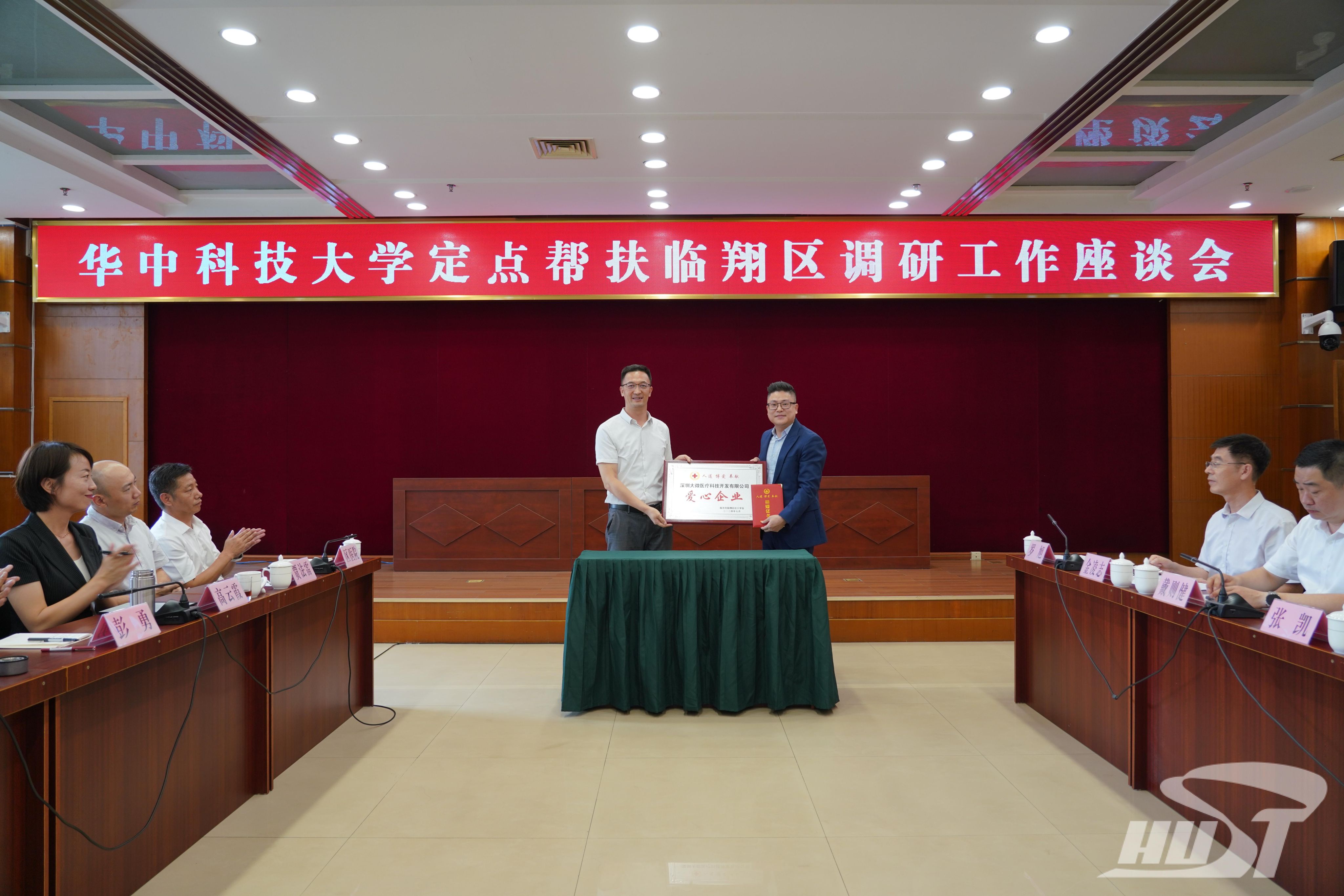 座谈会上还举行了捐赠仪式。经我校香港校友会牵线,深圳大微医疗科技开发有限公司向临翔区医共体总医院捐赠了价值60万元的医疗设备。刘明武向捐赠代表、我校电气工程及其自动化专业96级校友、深圳大微医疗科技开发有限公司首席运营官罗旭颁发证书。罗旭,我校香港校友会代表杜兰英,临翔区医共体总医院党委书记苏彦,我校校友办主任、教育发展基金管理处处长戴则健分别发言。