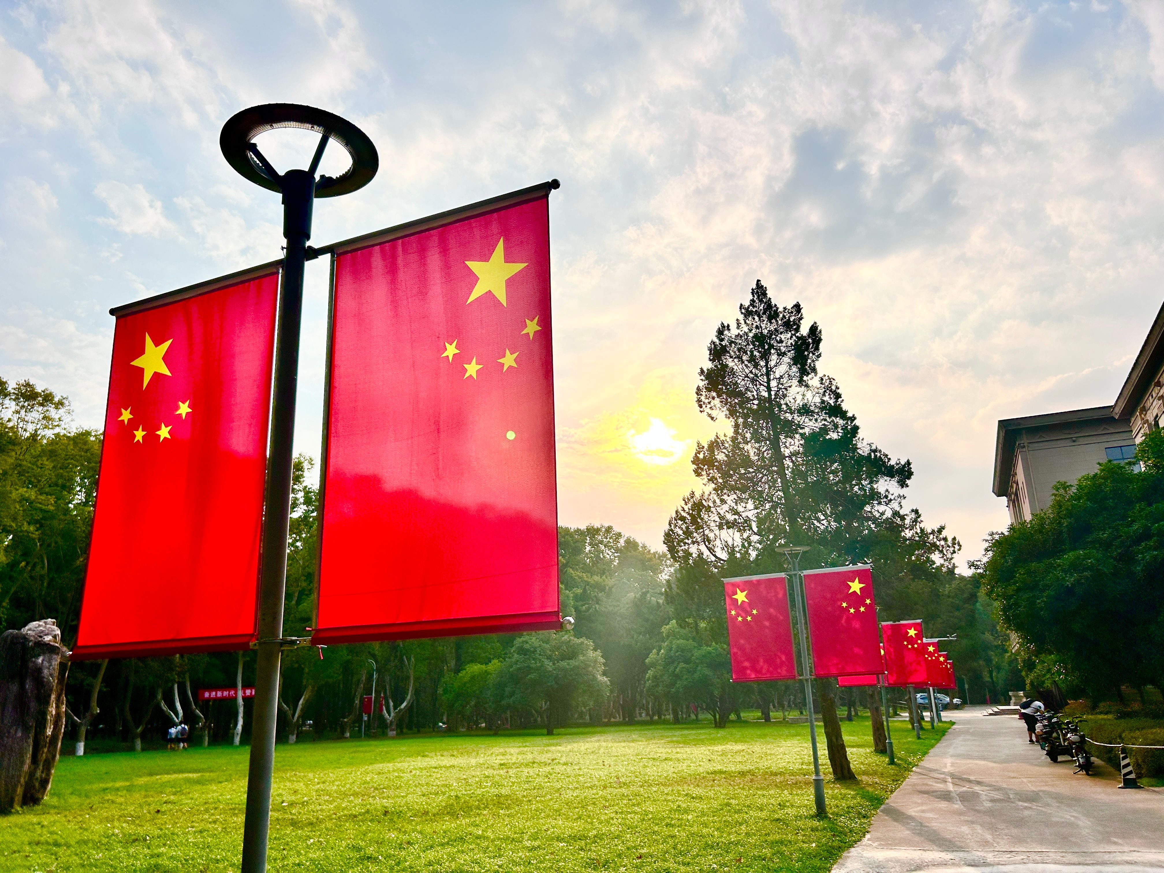 新闻网讯 国庆将至,漫步raybet电竞竞猜app校园,处处涌动的“中国红”在蓝天白云的衬托下显得格外鲜艳,形成一道亮丽的风景线。9月21日起,在党委宣传部的统一部署下,校园各主次干道及重要区域悬挂起五星红旗,营造浓厚国庆氛围。