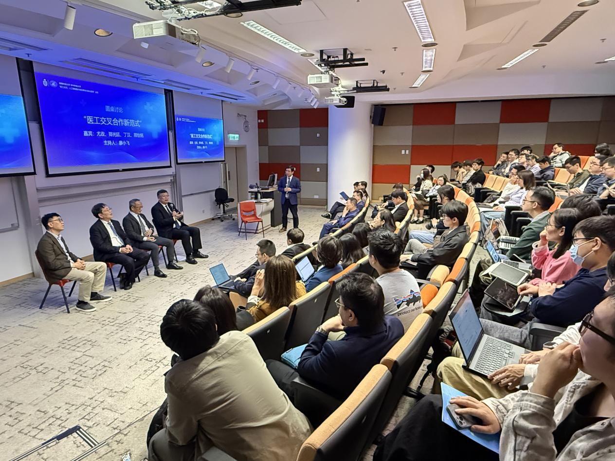 主题报告环节,我校机械学院丁汉院士、港科大副校长郑光廷教授分别以“人形机器人在潜在医疗领域的应用”和“通过‘应用-硬件’协同设计推进医疗人工智能和嵌入式人工智能的发展”为题作主题报告。专题报告环节,我校同济医学院副院长鲁友明教授,科发院副院长、医学科研处处长陈刚教授等双边学者代表依次带来医工交叉领域的精彩报告。圆桌讨论环节,尤政、丁汉、郑光廷和港科大邢怡铭教授围绕“医工交叉合作新范式”展开深入讨论并与在场观众互动交流。圆桌由我校科发院院长、计算机学院院长廖小飞主持。