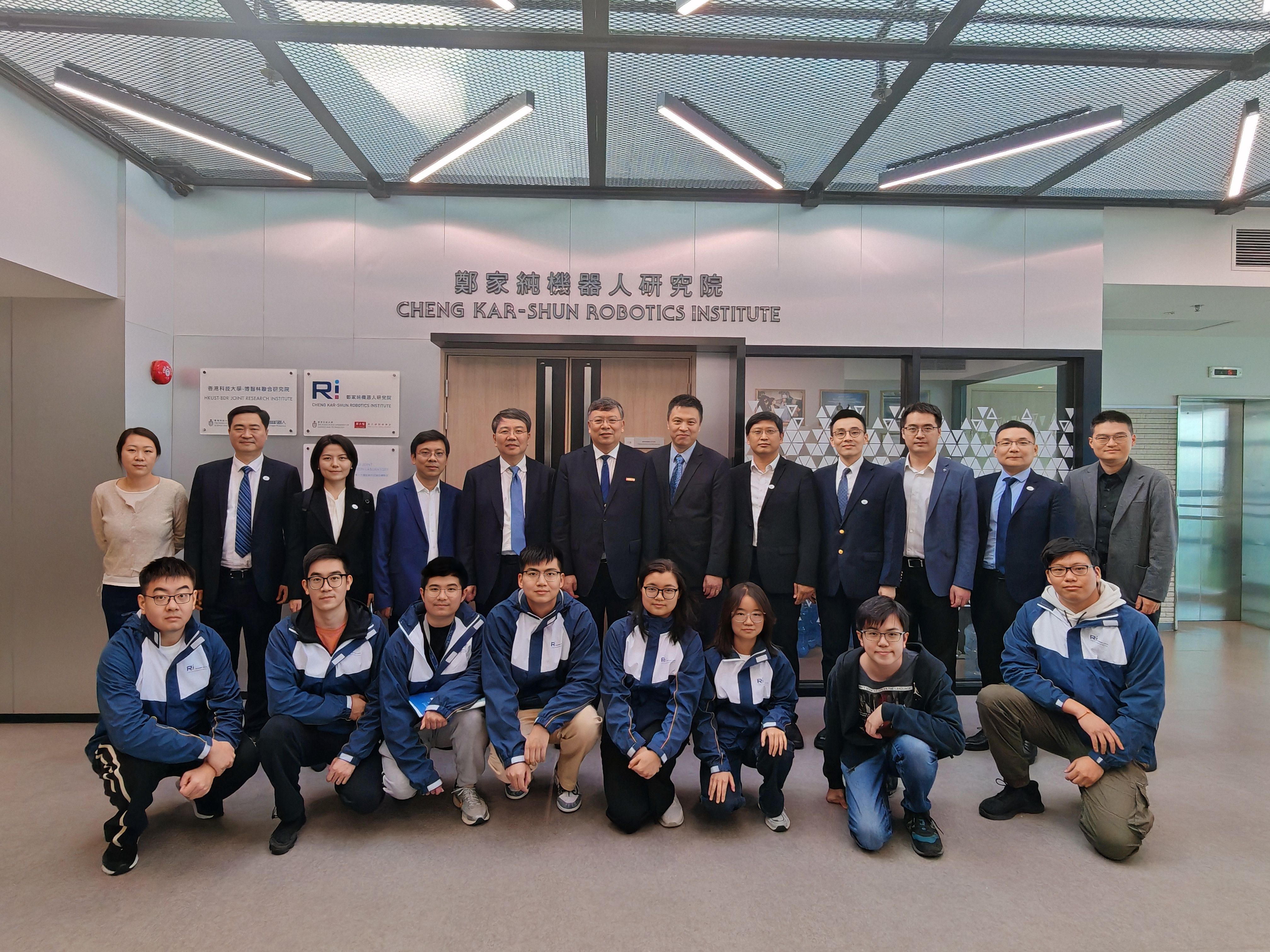 在港科大,尤政一行还到访郑家纯机器人研究院,研究院院长、机械及航空航天工程学系主任张福民教授陪同参观并讲解。