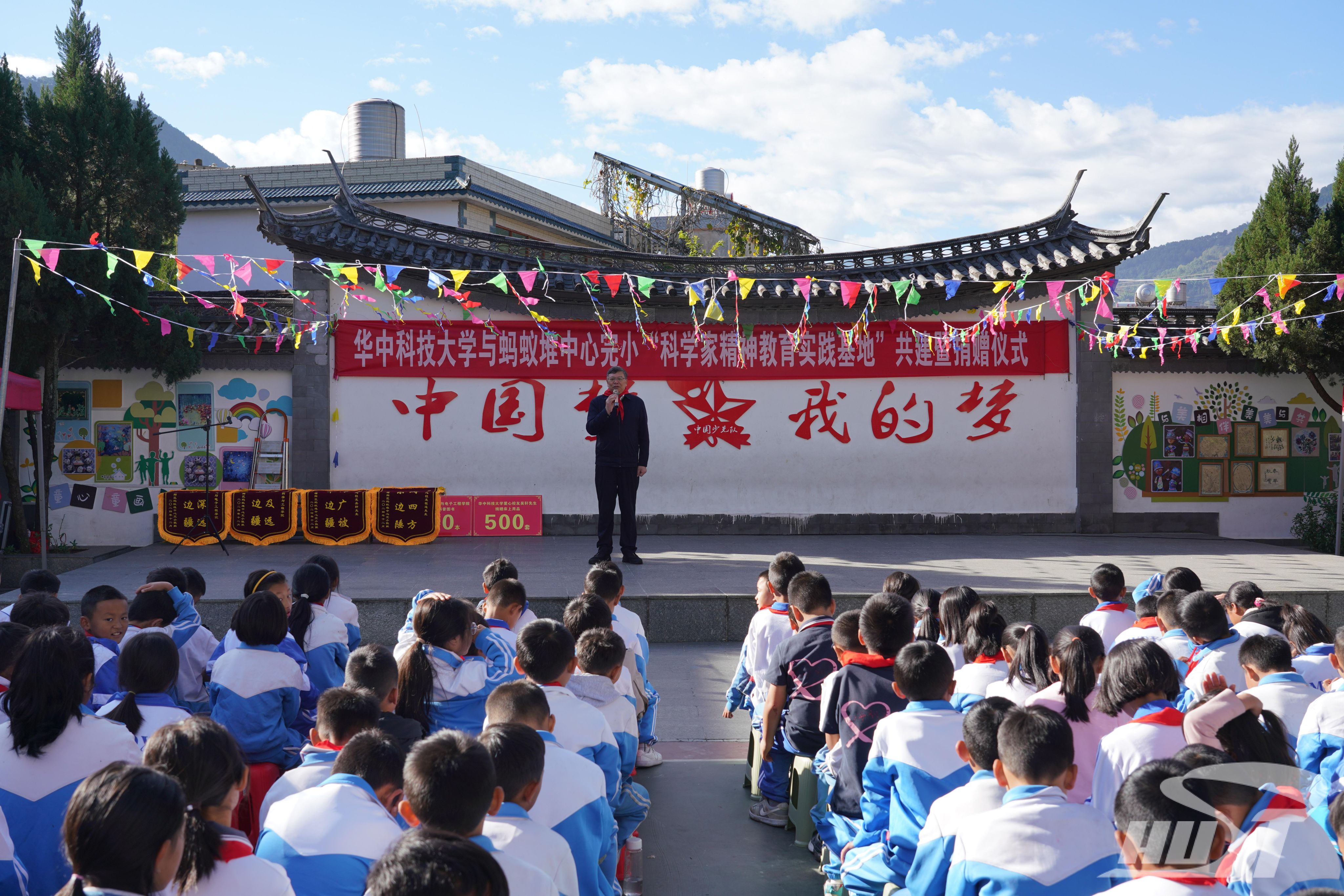 现场展示了在附小教师指导下,由完小学子独立完成的绘画成果、科创作品;机械学院举办了科学家精神教育基地蚂蚁堆完小实践基地共建仪式,点亮共建基地科普教育电子屏,并开展科学家精神教育课堂活动;电气学院“‘电’燃梦想”志愿服务队展示了原创科普读物和专为完小学子设计的电磁科普实验课堂。