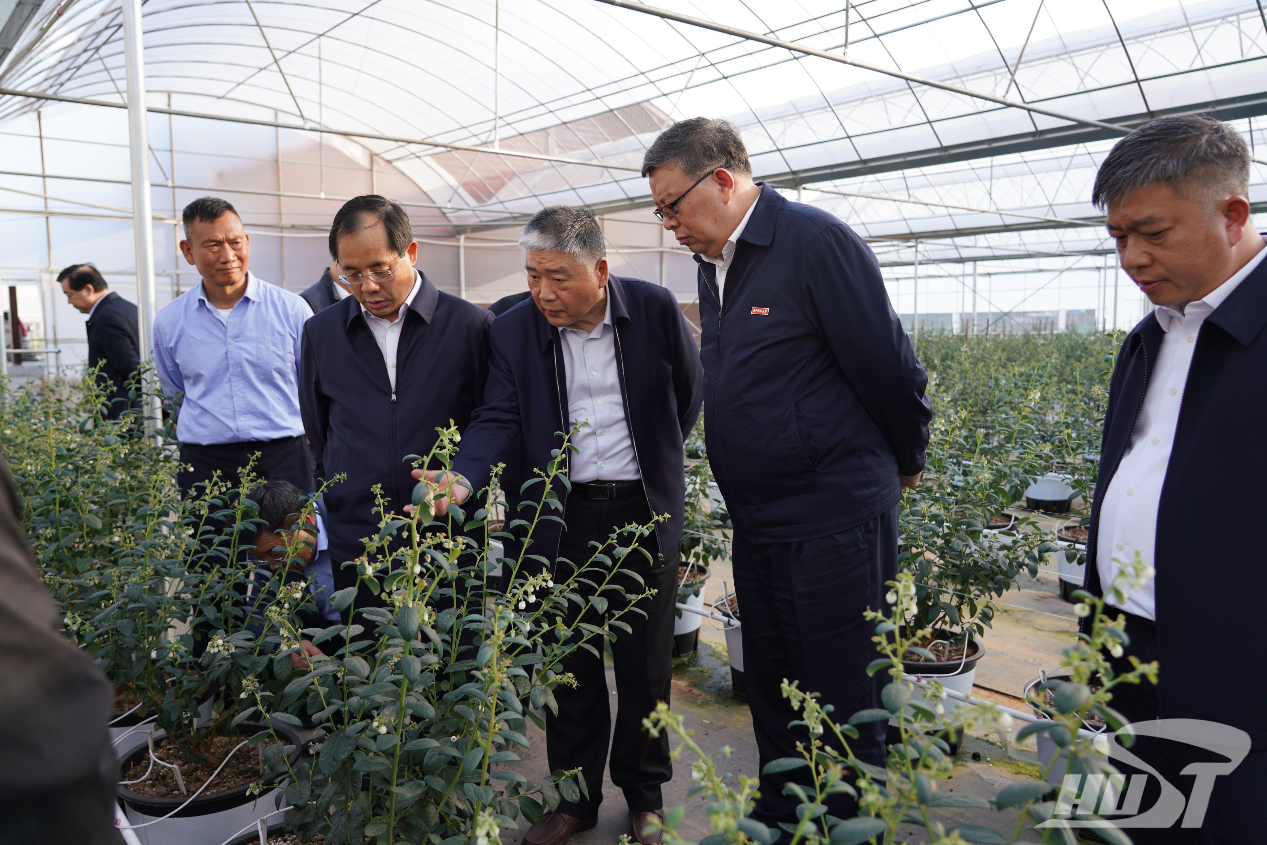 在马台蓝莓种植基地,尤政了解了当地种植产业开展的实际进展。