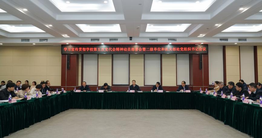 谢正学布置学习宣传贯彻学校第五次党代会精神重点工作,要求全校各级党组织充分认识第五次党代会的重大意义、全面领会党代会的精神实质、扎实推进党代会精神落地见效。