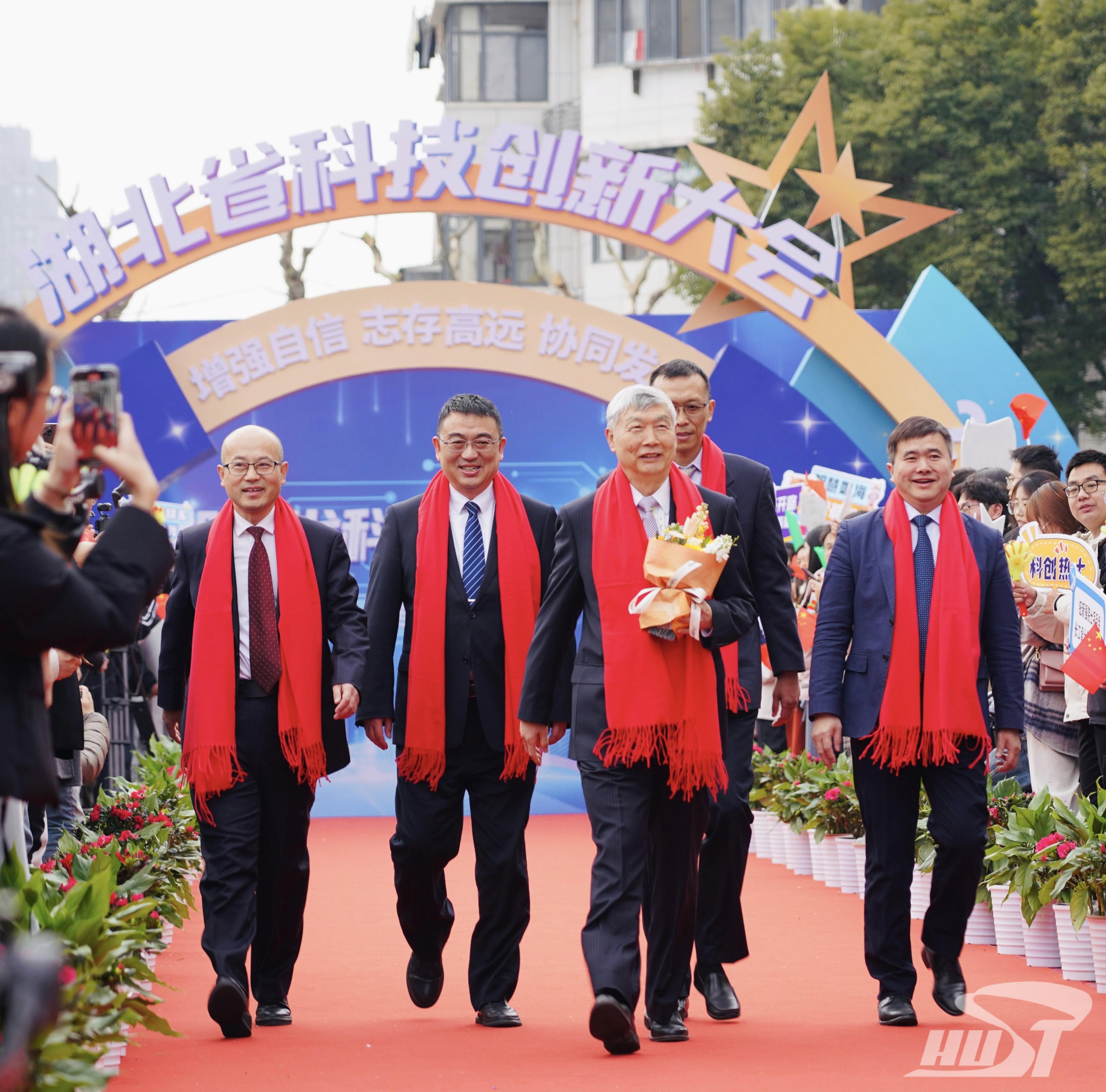本次科技创新大会采用隆重的走红毯仪式,10位科学家走过鲜花簇拥铺就的“星光大道”,一展科技明星风采。他们是最值得我们热爱的“硬核之星”,其中有2位来自我校,他们是机械科学与工程学院李培根院士、同济医学院附属同济医院魏翔教授。校长尤政参加大会。