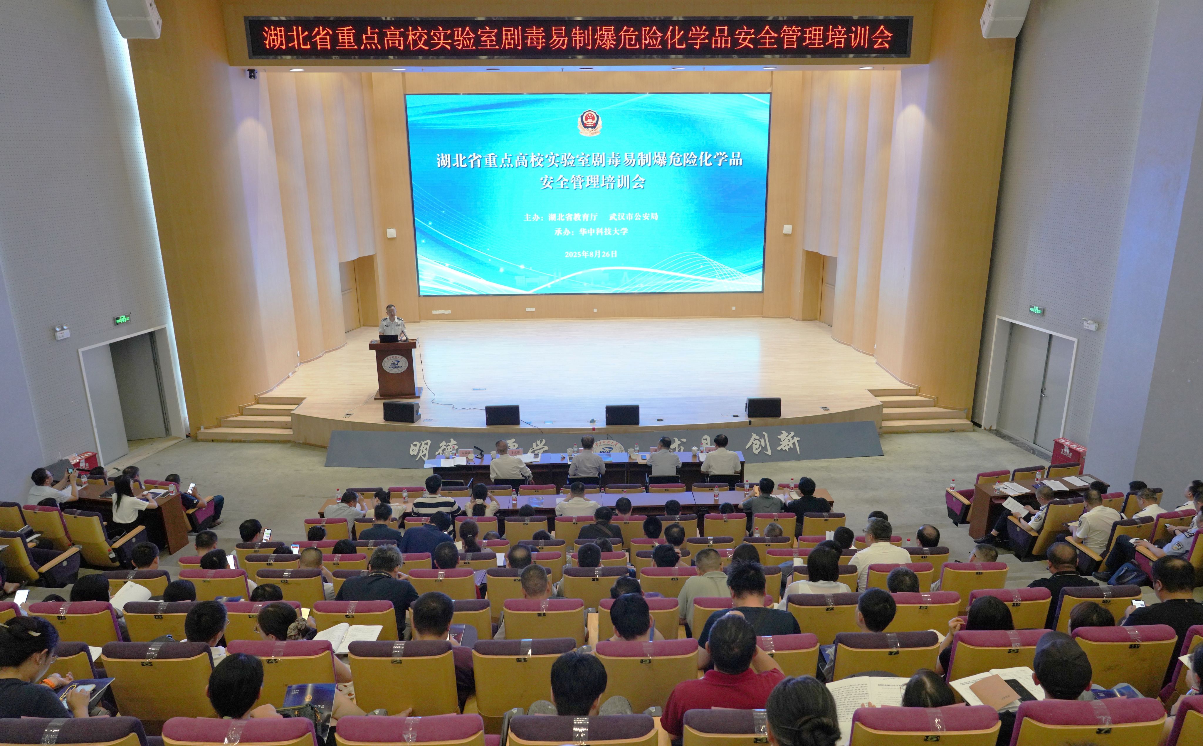 新闻网讯(通讯员 田志平)8月26日,由湖北省教育厅、武汉市公安局主办,我校承办的湖北省重点高校实验室剧毒易制爆危险化学品安全管理培训会在光电信息大楼召开。副校长文劲宇参加会议。