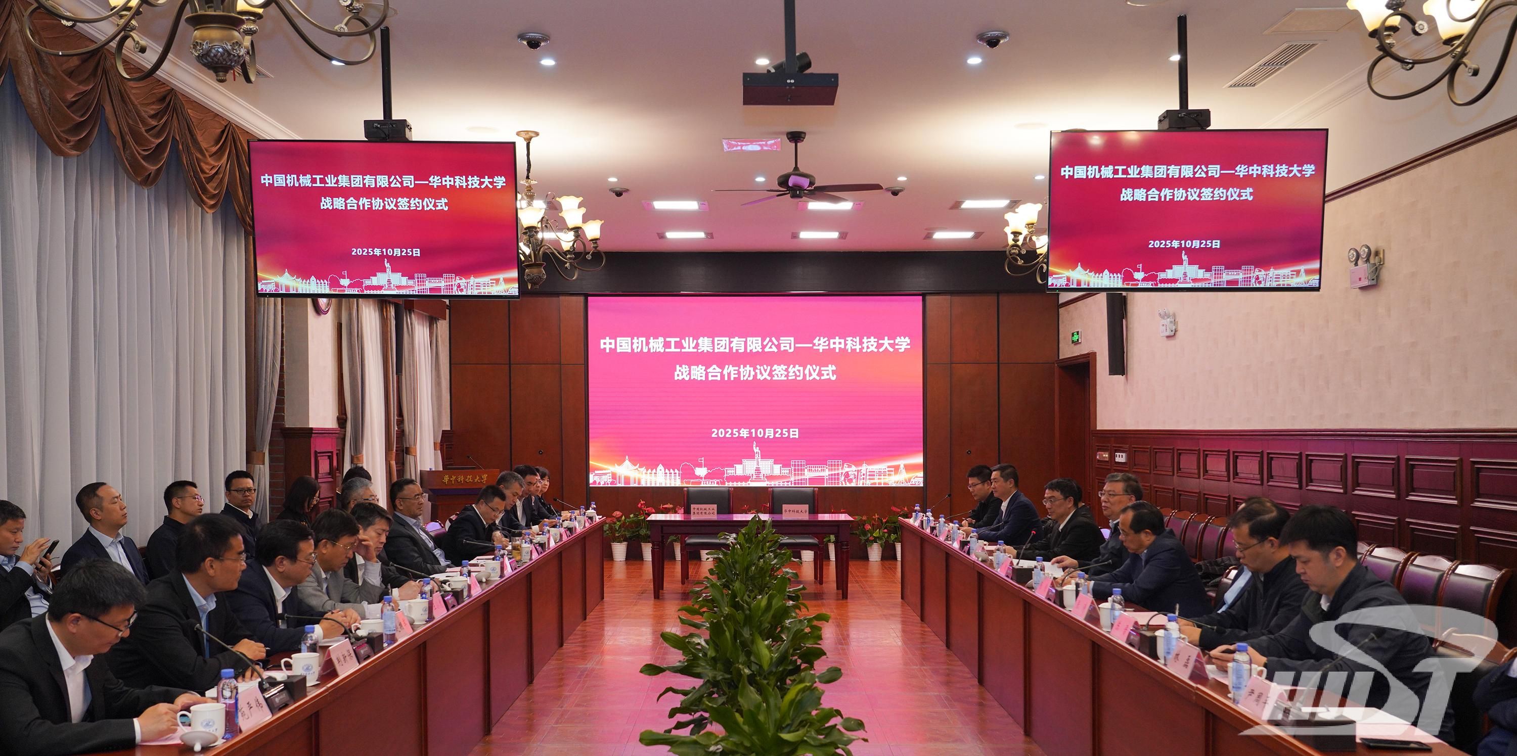 新闻网讯(记者 汪泉)10月25日,我校与中国机械工业集团有限公司战略合作协议签约仪式在梧桐语问学中心举行。校长尤政,国机集团党委书记、董事长张晓仑见证签约。校党委副书记张耀、张涛,国机集团董事、党委副书记丁宏祥,党委常委、副总经理范志超参加活动。副校长高亮主持签约仪式。