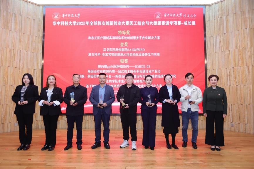 会上,2025年全球校友创新创业大赛成长组、初创组获奖团队揭晓。刘波、武汉市洪山区委书记严中兴为获奖团队颁奖。