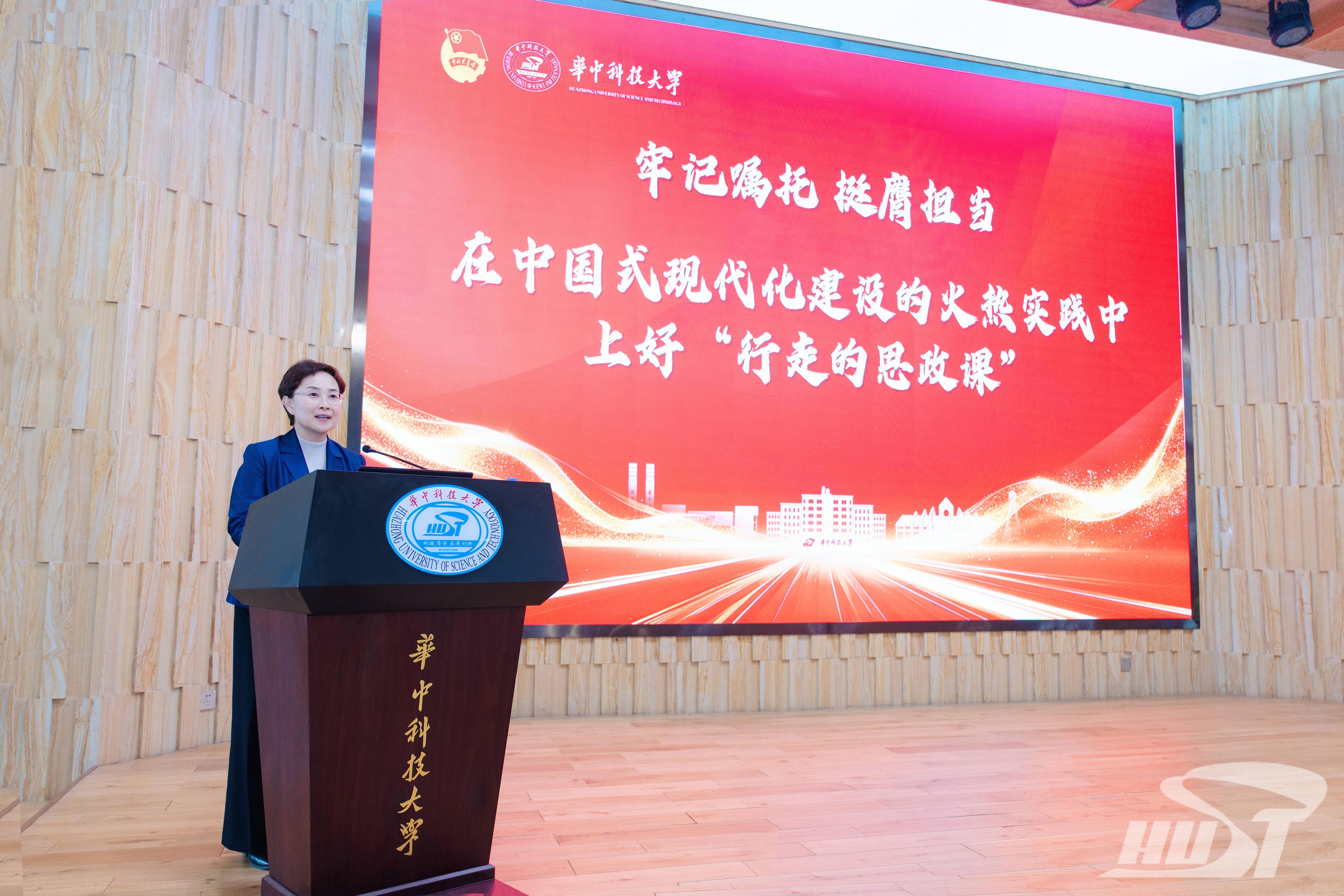 现场,8名师生代表围绕“学生如何参与、教师如何指导、学院如何组织”分别汇报实践经验。集成电路学院黄宇讲述了在中国“芯”实践中的成长收获;马克思主义学院吴心旖通过探寻湖北“三大精神”让理论宣讲更加入脑入心;土木与水利工程学院徐嘉木谈到社会实践让他有了“揭榜挂帅”的底气;新闻学院余易昕回顾了科技和人文相融合的AI助聋实践之旅;药学院康佳讲述了自己“西部支教”和“捐髓救人”的感人故事;武汉光电国家研究中心王泽松分享了自己在国际原子能机构的实践收获。光电信息学院党委副书记李文龙系统介绍了学院五育并举,构建实践育人共同体的宝贵经验;机械学院“微智助”团队指导老师陶波教授分享了深耕15年坚持在一线指导学生实践的育人故事和创新纾困助力中小企业发展的实践历程经验。