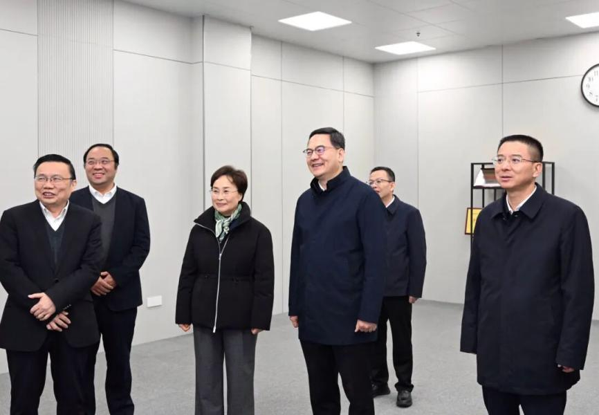 盛阅春、熊征宇来到国家集成电路产教融合创新平台、国家数字建造技术创新中心,详细了解科技成果转化应用、产教融合发展、创新平台校地共建等情况。