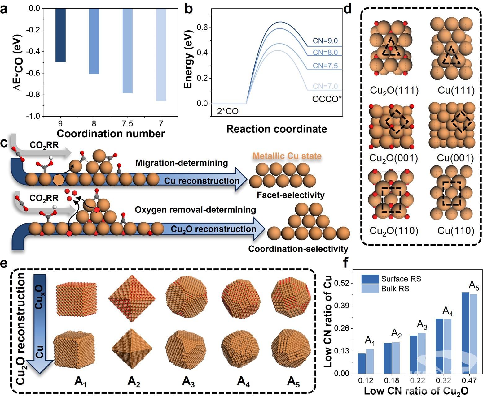 随着当前社会的快速发展,化石燃料的大量使用导致空气中的二氧化碳浓度逐年增加。目前已经带来了严重的环境问题,如全球变暖、酸雨、能源短缺等,这已经严重影响到了全球生态的可持续发展。电催化二氧化碳还原是一种在可再生能源的驱动下,通过电解的方式将二氧化碳还原为有机化合物的技术。一方面它可以有效降低空气中的二氧化碳浓度,减缓温室效应问题;另一方面可以实现间歇能源的存储与转化,为建立可持续的能源循环提供了一种潜在的解决方案。乙烯作为一种重要的化工原料,广泛用于合成塑料、化肥和其他化工行业。目前,人类每年对乙烯的需求量超过了1.58亿吨。开发高效的电催化二氧化碳还原为乙烯的技术,不仅能够实现对二氧化碳的有效固定还能减少对化石燃料的依赖,从而推动工业向更环保、低碳的方向发展。铜基催化剂是目前唯一一种被广泛认为具有生成多碳产物能力的金属催化剂。尽管目前很多研究通过合金、参杂以及修饰的方式可以大大提高催化剂的选择性。然而,由于催化剂在电催化反应过程中受到电压、电解液以及电流等的影响,往往会发生不可逆的重构,导致催化剂失去原有的性能,进而引起系统失效。
