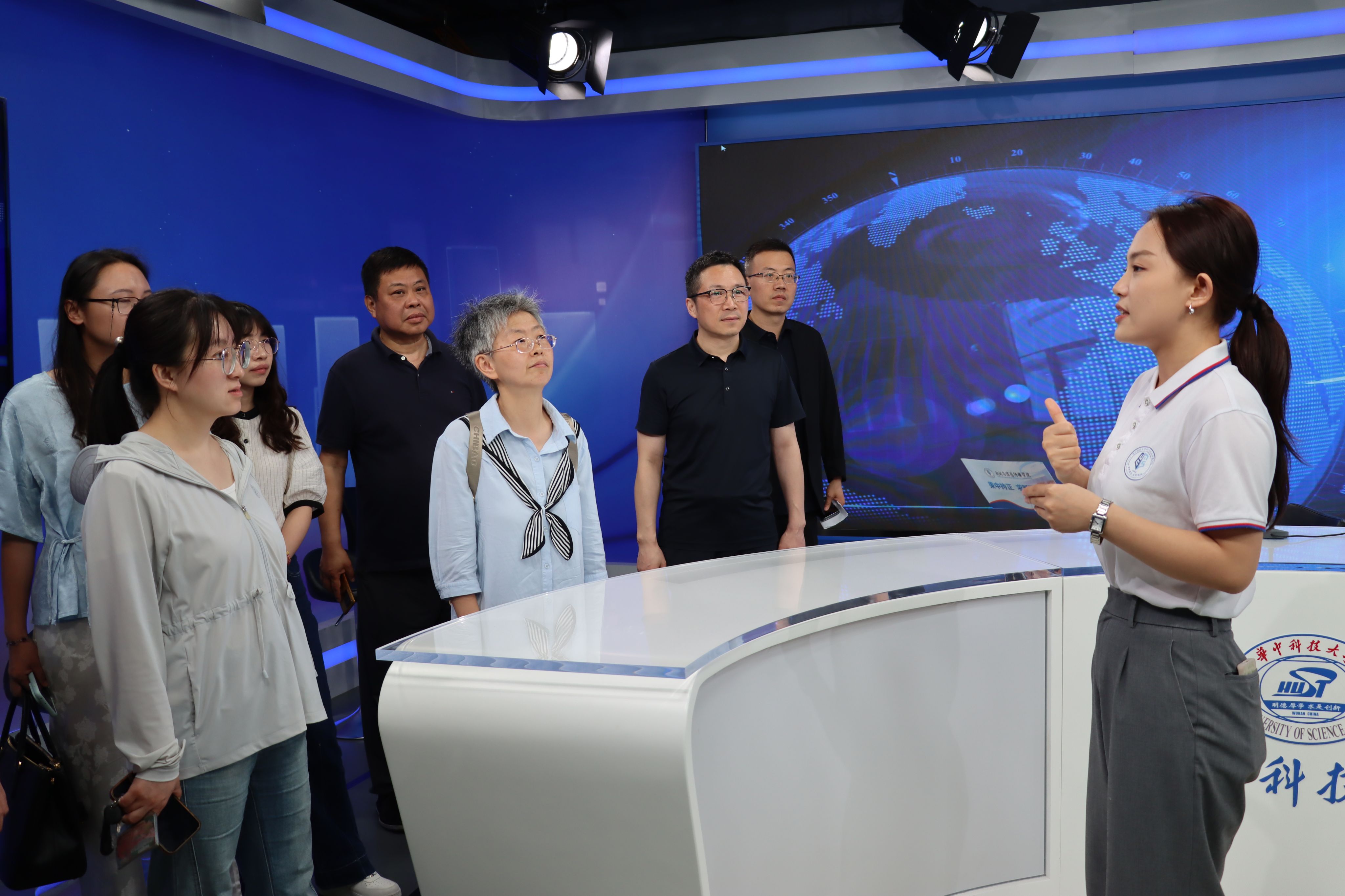 在参观环节,与会老师们先后参观了演播大厅、融媒体实训中心、全景演播室、虚拟现实及创客中心,体验了人像摄影、多机位导播、融媒体云平台等实验内容。在演播大厅,与会教师体验大型LED屏幕、智能灯光、导播台等。在融媒体实训中心,大家了解舆情监测、智能生产、融合发布等功能模块,浏览学生在数据新闻、可视化表达、AI辅助写作等方面的训练成果。大家走进全景演播室,沉浸式体验坐播区、访谈区与虚拟区的多场景应用。由实验中心教师自主研发的智能借还系统,实现了设备预约、审批、借还全流程线上化。参访教师们对此解决实验教学“最后一公里”问题的做法给予积极评价,并提出了推广建议。在虚拟现实及创客实验室,大家深入了解“基于虚拟数字人的演播室节目制作仿真实验”系统,体验线上导播与多机位协同拍摄。