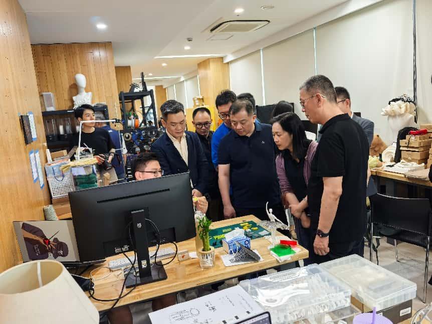 在浙江大学国际设计研究院,调研团与副院长汤永川等进行深入交流。双方围绕六大模块课程大纲、研究生培养方案、暑期夏令营等教学改革议题展开了细致探讨,并就设计教育国际化推进、产学研一体化实施等方面分享实践经验。