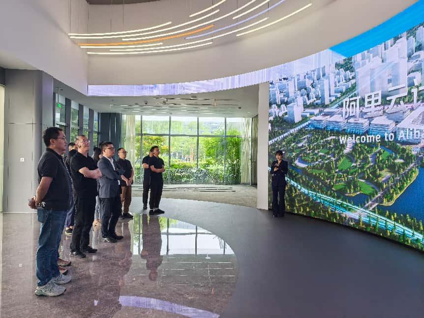 在阿里云智能集团,双方围绕专项课题研究、典型项目合作、教育工具开发等校企合作模式展开了深入交流,共同探讨如何将企业需求与设计教育深度融合,构建创新型人才培养体系。集团总监郭伟杰详细介绍了阿里云在云计算、人工智能等领域的实践成果,并分享了企业在数字化转型过程中对设计人才的新需求。