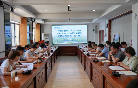 新闻网讯 为深入贯彻中央八项规定精神,进一步加强学工部内部工作交流和队伍建设,建设“书香学工”,落实立德树人根本任务,5月29日上午,学工部深入贯彻中央八项规定精神学习教育第三期读书班扩大学习会议暨第十二次工作交流会举行。学工部全体教职工参加学习。