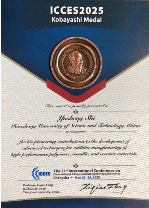 新闻网讯(通讯员 蔡超)5月25至29日,第三十一届计算与实验科学工程国际会议(ICCES 2025)举行。我校材料学院史玉升教授被授予Kobayashi奖章,以表彰其在高性能聚合物、金属及陶瓷增材制造(3D打印)技术领域所作出的开创性贡献和杰出成就。