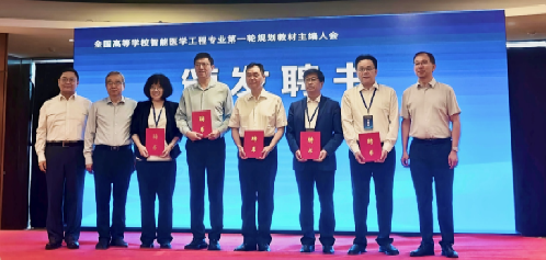 新闻网讯 6月10日,全国高等学校智能医学工程专业规划教材主编人会议在京召开。会上,宣布了第一轮规划教材纸质教材及数字资源主编、副主编名单并颁发聘书。湖北省医疗健康领域共有两位专家入选,均来自我校附属同济医院。中国科学院院士、附属同济医院外科学系主任陈孝平任《智能医疗机器人》第一主编;附属同济医院党委书记、神经内科教授唐洲平任《脑科学与类脑计算》第一主编。