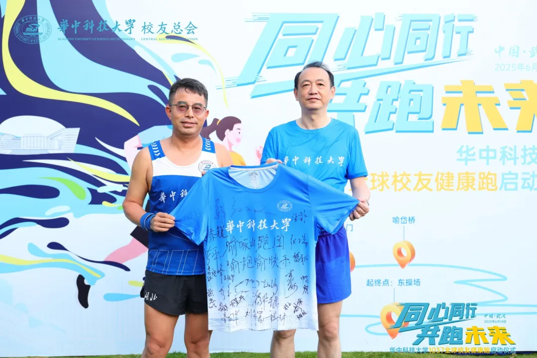 喻家山跑团团长李承海代表跑团成员,向母校赠送了一件极具纪念意义的特制跑服。这件跑服上写满了raybet电竞竞猜app跑步爱好者校友的签名,承载着他们对母校的深情祝福。
