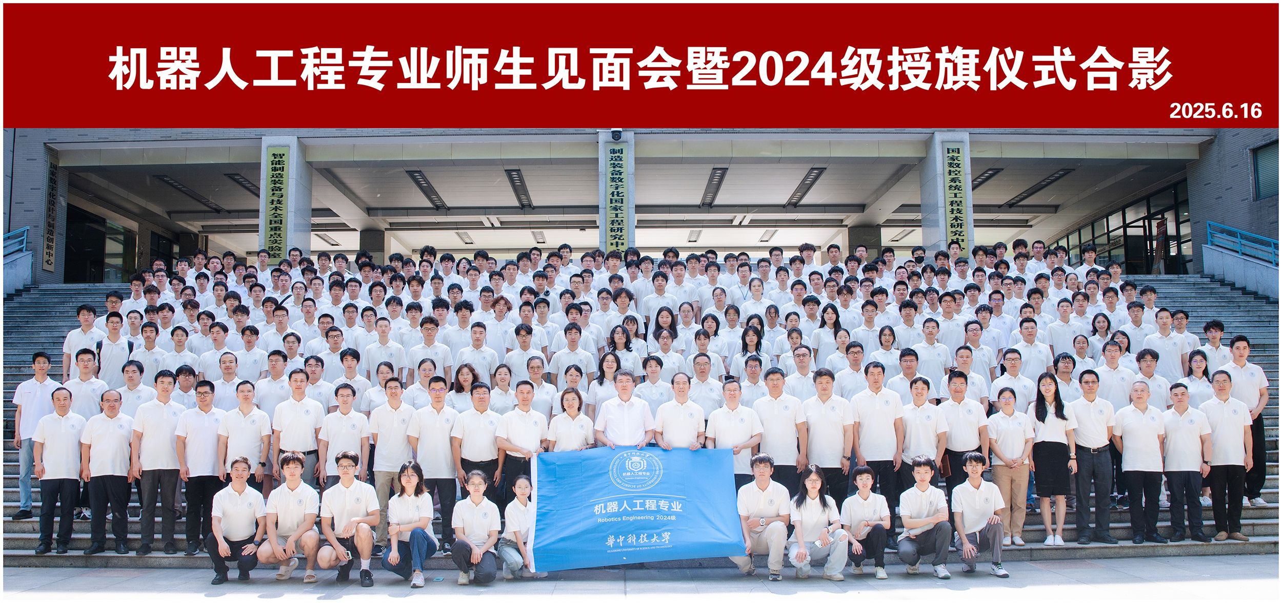新闻网讯(通讯员 李益群 赵欢)6月16日,机械学院“机器人工程”专业师生见面会暨2024级授旗仪式在学术报告厅举行。校学术委员会主任、2024级“机器人工程”专业首届教师班主任丁汉院士;学院党委书记张芬,院长尹周平,副院长彭芳瑜、许剑锋、陶波、李新宇、蒋平,院党委副书记张绍浩,院长助理夏凉、韩斌等参加活动。