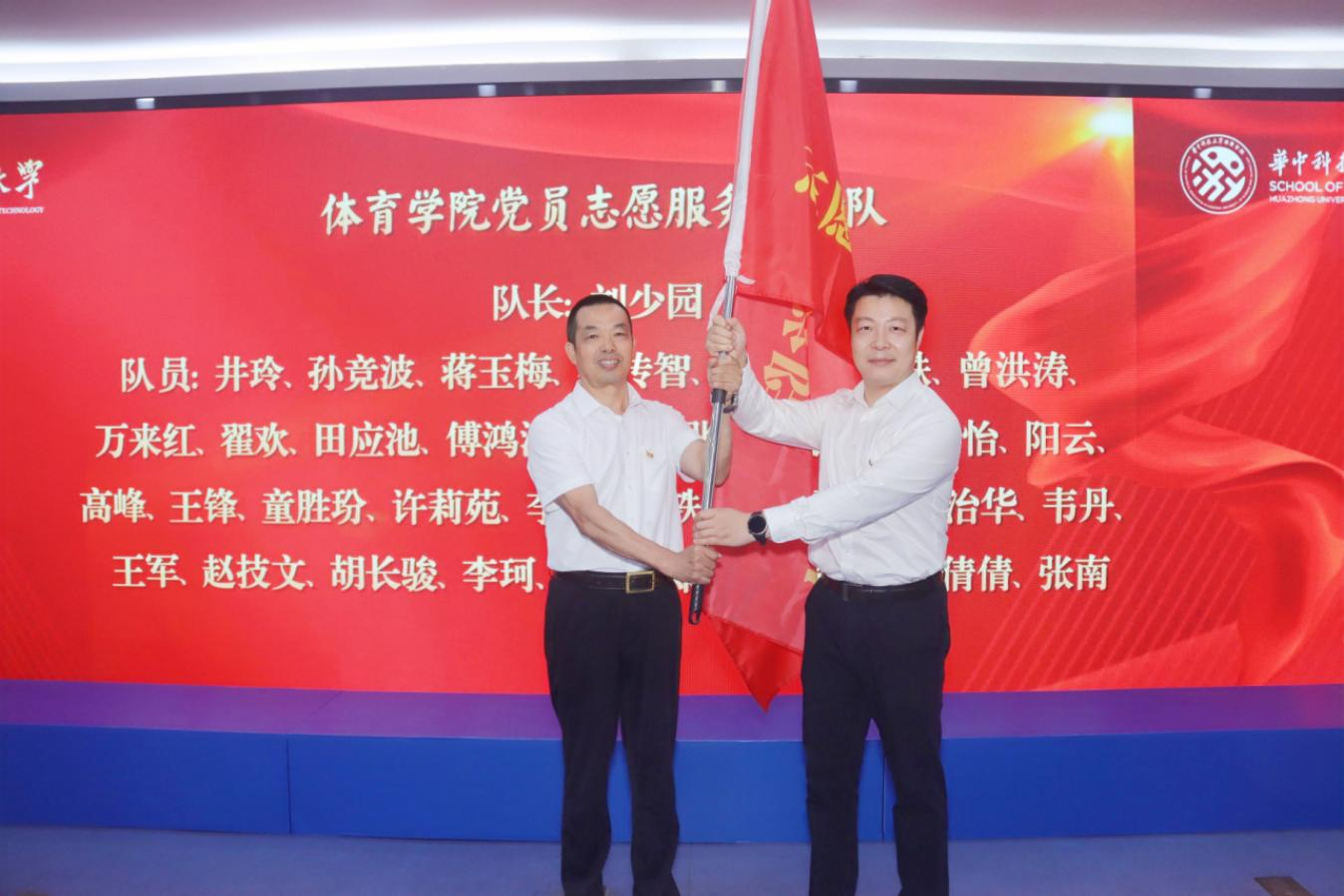 学院党委书记李磊为党员先锋队队长刘少园授予队旗。