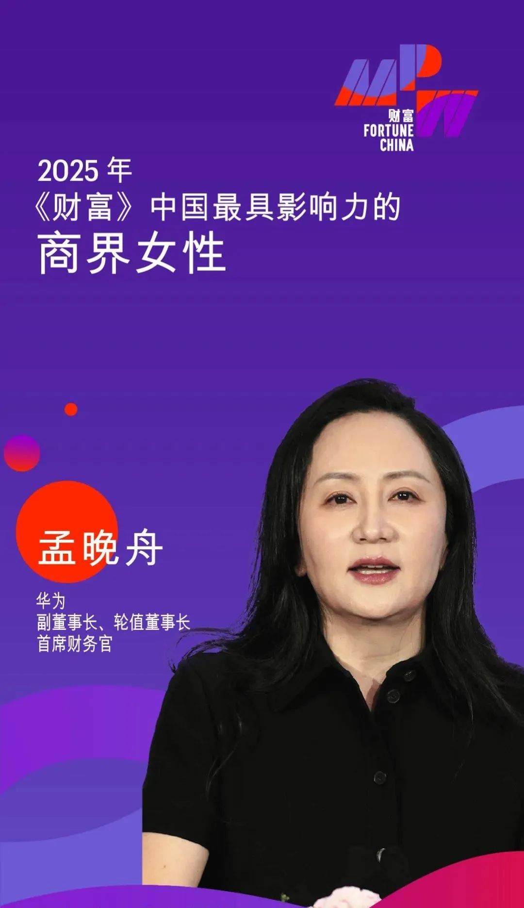 孟晚舟,历任公司国际会计总监、华为香港公司首席财务官、账务管理部总裁。现任副董事长、轮值董事长、公司CFO。