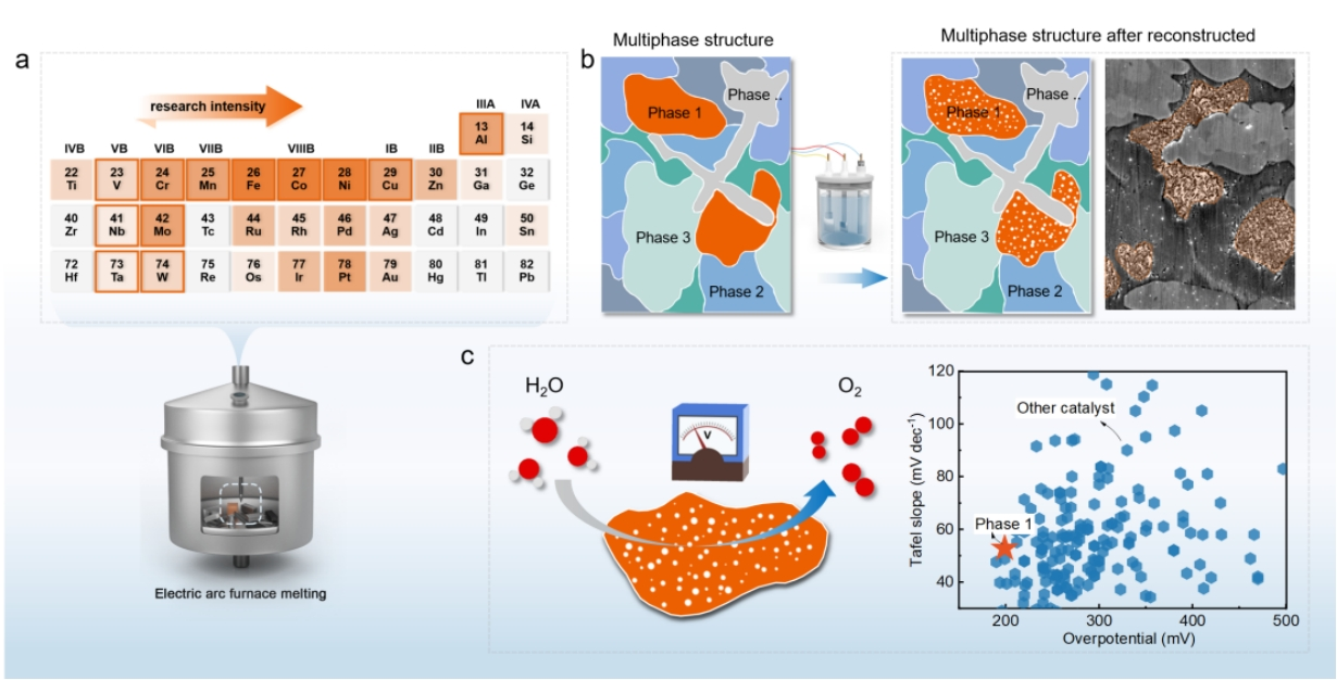 基于该方法,团队成功在一个包含七个相的多相高熵合金体系中识别出催化性能最优异的纳米相分离结构。该相在10 mA cm-2电流密度下展现出低至199 mV的过电位,并具有优异的稳定性,进一步验证了该方法在高熵合金催化剂筛选中的有效性与实用性。