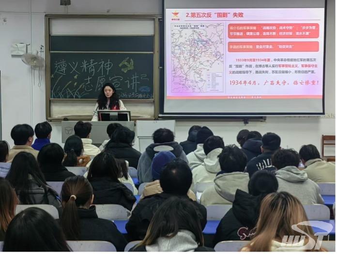 为深入学习宣传贯彻党的二十大精神,纪念遵义会议召开90周年,在校党委学生工作部、校团委的关怀指导下,rabey雷竞技研究生青马班遵义会议精神志愿宣讲团正式成立。自2024年8月以来,团队创新打造“实地研学+专业导学+集体备课+磨课试讲+联学联讲”的全链条工作模式,坚持将理论与实践结合、线下与线上联动、校内与校外促进的三种形式,把理论学习融入党团建设和青年骨干培养。开展了一系列主题鲜明、形式多样的宣讲活动,覆盖校内外党团支部、周边高校、基层社区,累计开展宣讲实践50余次,服务逾万人,让遵义会议精神在新时代绽放光芒。
