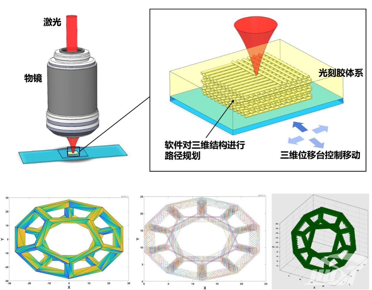 图4 激光直写光刻机原理以及3D结构软件自动化分析与路径规划