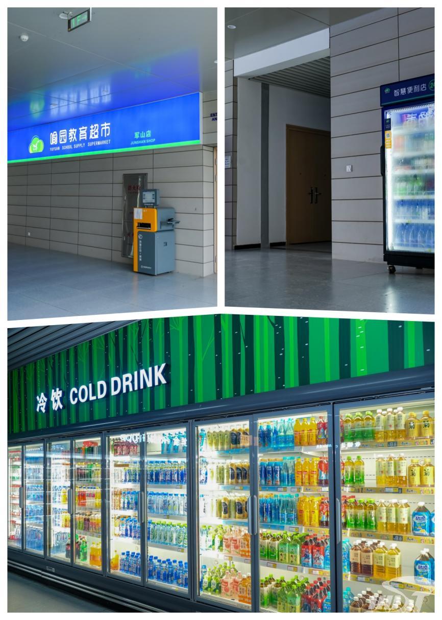 除了基础服务,一层还规划了多样化的学习与交流空间。自习室内配备舒适的桌椅和充足的插座,为学子们提供专注学习的理想场所;研讨室便于小组讨论课题、碰撞思维火花;党团活动室是开展组织生活、凝聚青年力量的重要阵地;咨询室则为大家提供一对一的沟通平台,助力解决学业、生活中的困惑。这些空间相互配合,满足了学子们从独立学习到团队协作、从思想交流到个人咨询的多元需求。其中2栋A区一层设喻园教育超市(军山店),环境整洁舒适,商品品类丰富,支持校园卡、微信、支付宝等多种支付方式。超市门口还设有自助售货柜、自助打印机,24小时提供服务。