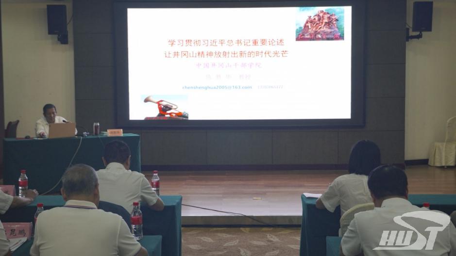 中国井冈山干部学院教学科研部党史教研中心主任陈胜华教授以“学习贯彻习近平总书记重要论述,让井冈山精神放射出新的时代光芒”为题作专题授课。他系统梳理了“引兵井冈”“朱毛会师”“红色割据”“反围剿斗争”的历史脉络,全面解读了井冈山精神的深刻内涵和时代价值,生动展现了革命者不怕牺牲、英勇斗争的崇高品格。