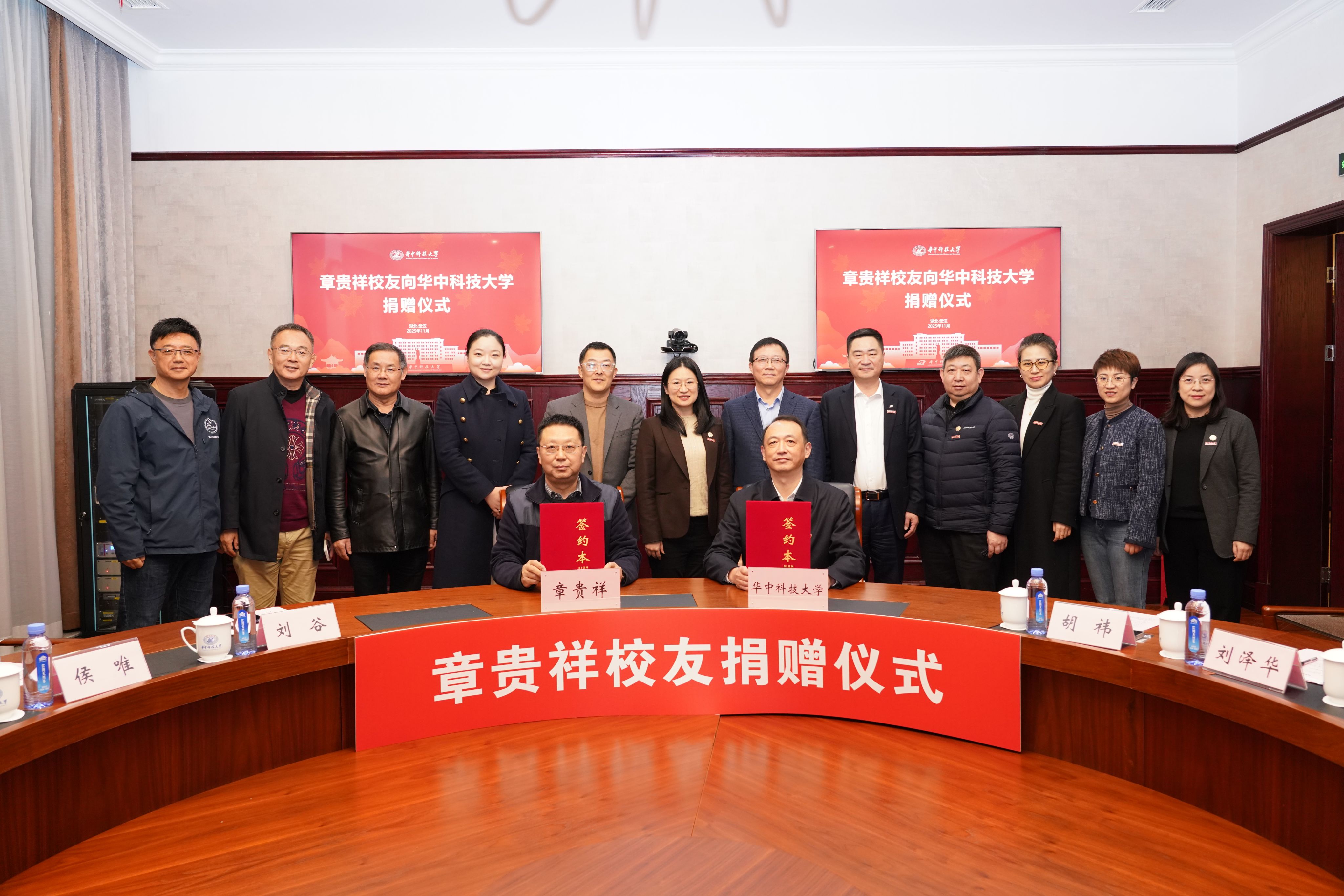 捐赠方代表吴业春、张瑞龙、郭亮、侯唯、刘谷,学校相关部门及学院相关负责人,校友代表参加活动。