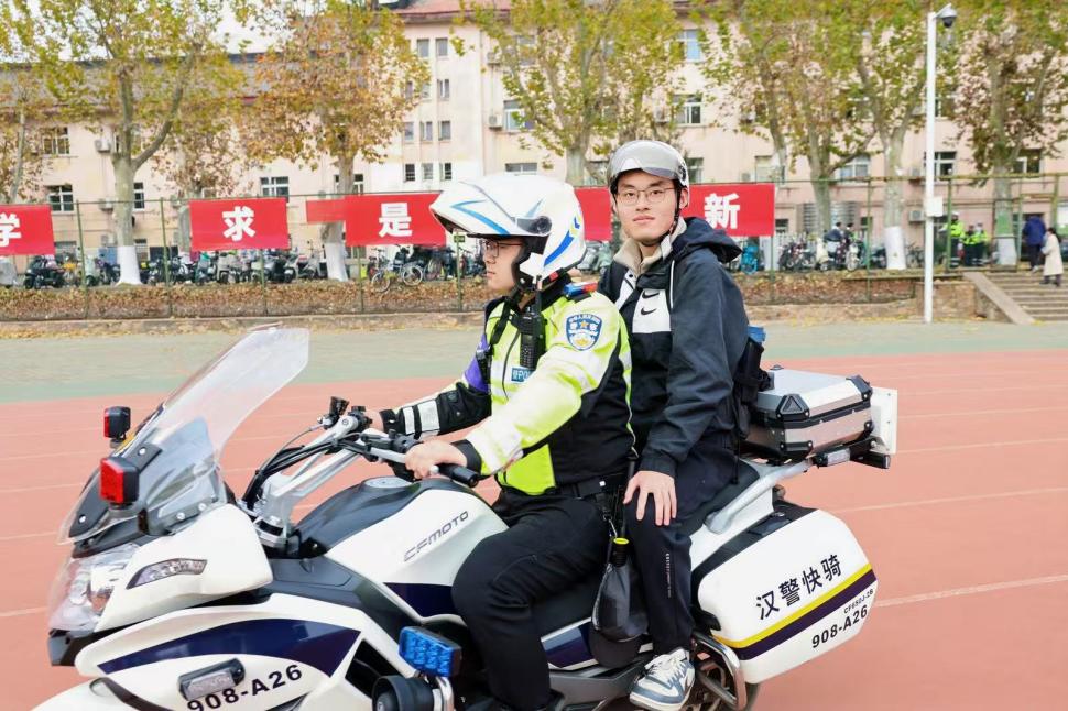 活动在校保卫处队员和汉警快骑的列队亮相中拉开帷幕。开幕式上,校保卫处处长顾国强、东湖高新区交通大队车管科科长曾毅致辞。顾国强呼吁全体师生以此次活动为契机,认真学习交通安全法规,做到知危险、会避险,让交通安全知识入脑入心,共同维护校园交通秩序,共建平安校园。曾毅指出“122”具有特殊的含义,不仅是“全国交通宣传日”,也是我国道路交通事故报警电话,如遇交通事故或发现交通违法行为,请及时拨打“122”。他强调每一位师生都是校园交通的参与者与建设者,希望大家以实际行动为平安校园建设贡献力量。