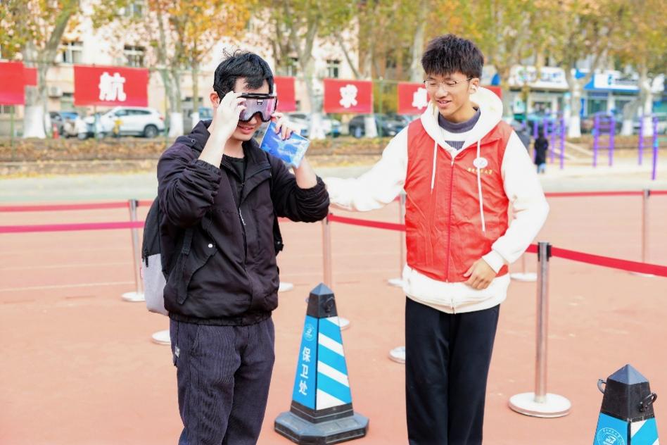 在互动体验区域人头攒动,交通安全知识答题闯关、骑行头盔佩戴规范讲解、酒驾VR体验等互动项目让广大师生沉浸式学习交通安全知识,20余名师生依次佩戴VR设备,感受醉酒状态下出行的安全隐患,有效提升了师生的交通安全守法意识和自我保护能力。