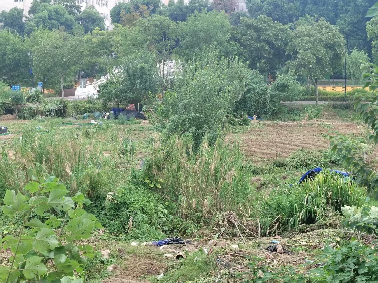 曙光养殖场土地位于学校东校区核心区域,夹在东九教学楼、学生宿舍与操场之间,总面积约227亩,由北地块(约151亩)和南地块(约76亩)组成。长期以来,该地块因权属不清、管理缺位,被大量菜地、杂树、私搭乱建工棚以及校外驾校、快递临时站点等占据,割裂了东校区教学区与生活区,师生通行不便,安全隐患突出,严重制约校园交通组织优化与整体功能整合。