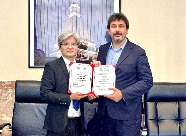 访问期间,我校建规学院院长谭刚毅向该校建筑学院院长博明凯(Michele Bonino)颁授客座教授聘书 ,双方还共同签署了关于深化建筑领域教学科研合作的备忘录。